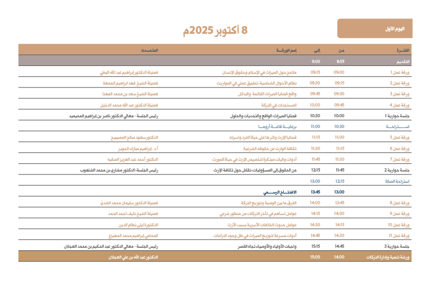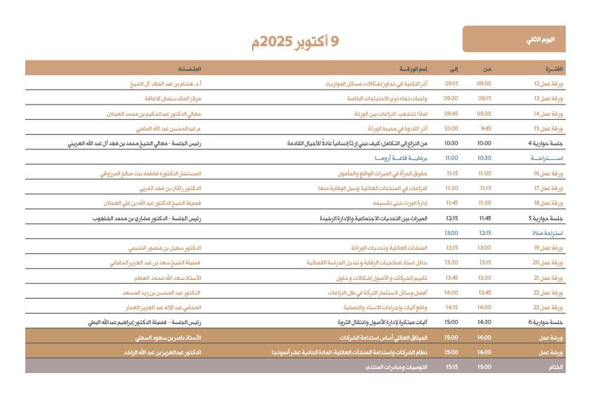 • روعي في المحاور وأوراق العمل أن تكون ملامسة للواقع بشكل مباشر وبلغة مبسطة وهي عوامل تساعد على تفاعل العامة كون قضايا الميراث قضايا عامة وهي في جل الحراك اليومي للمجتمع وسط آلاف القضايا التي لازالت تدور رحاها في أروقة المحاكم أو الجهات الأخرى.
